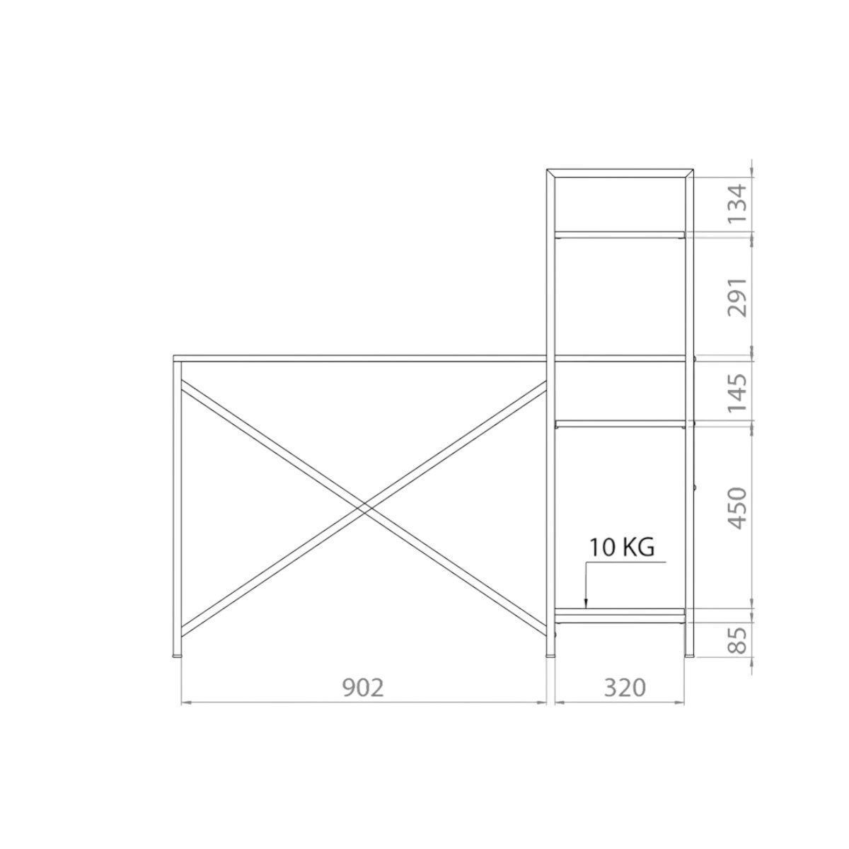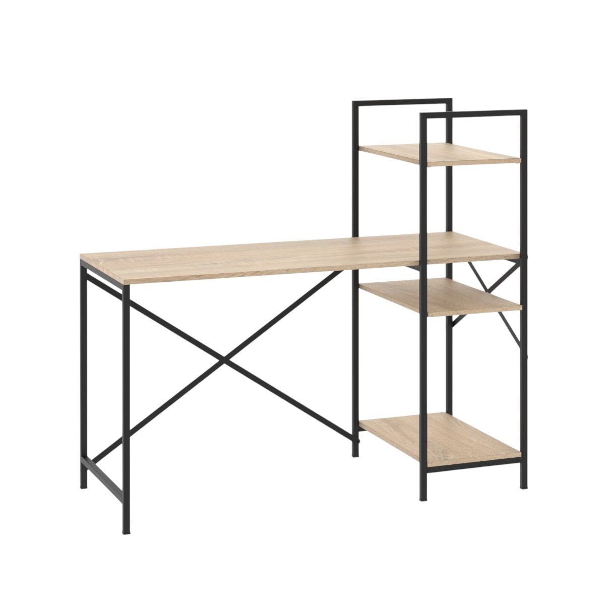 Este mueble es un escritorio simple de grandes dimensiones, con una biblioteca vertical en el lateral.