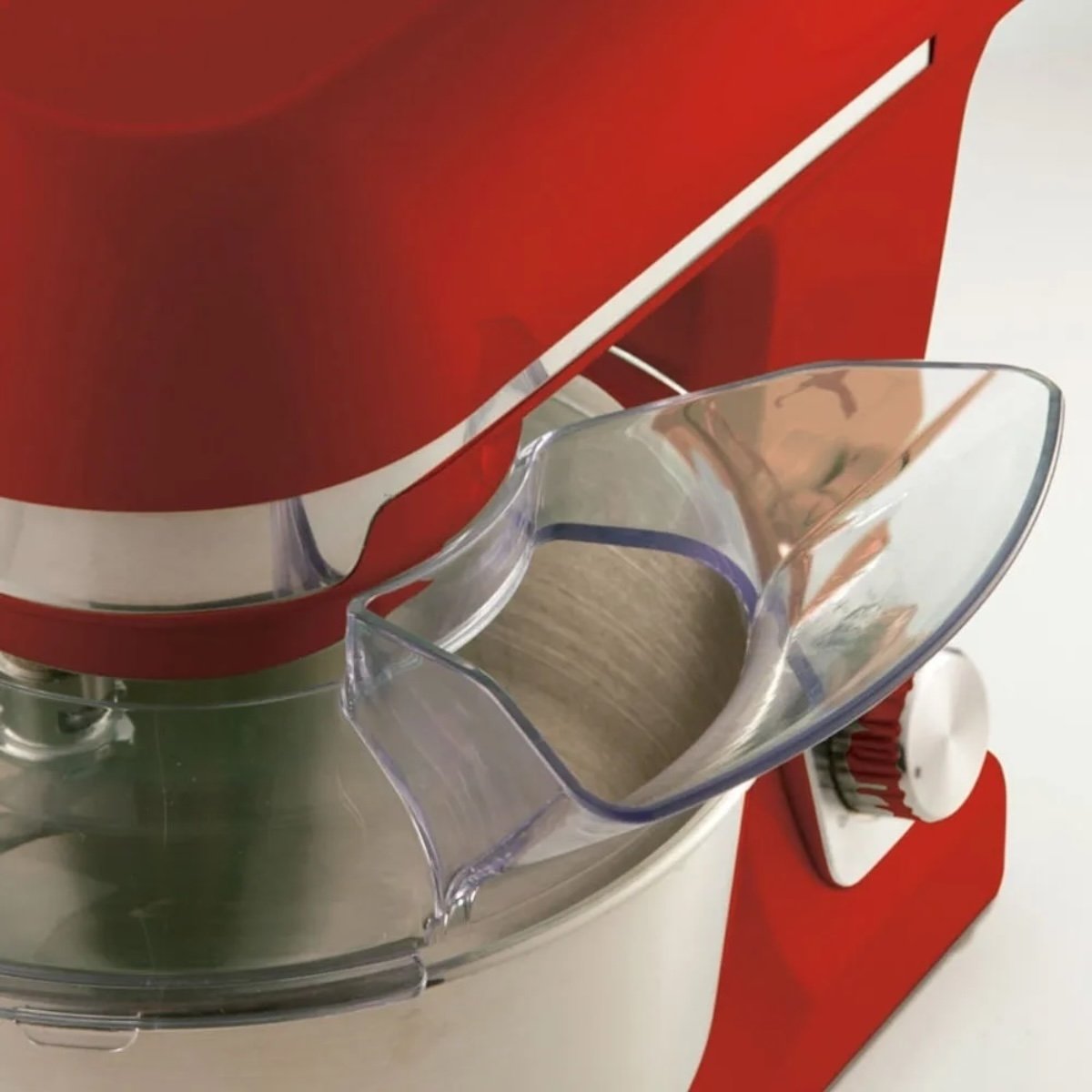 Accesorios para todo tipo de recetas: Incluye batidor de alambre fino, mezclador, gancho para masas pesadas y cobertor anti-salpicaduras.